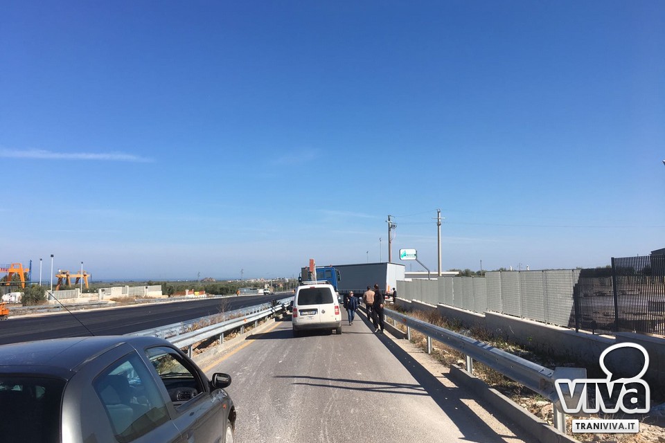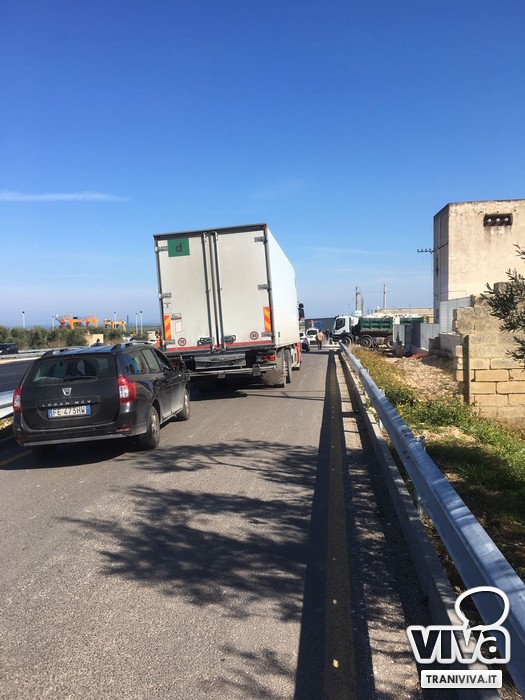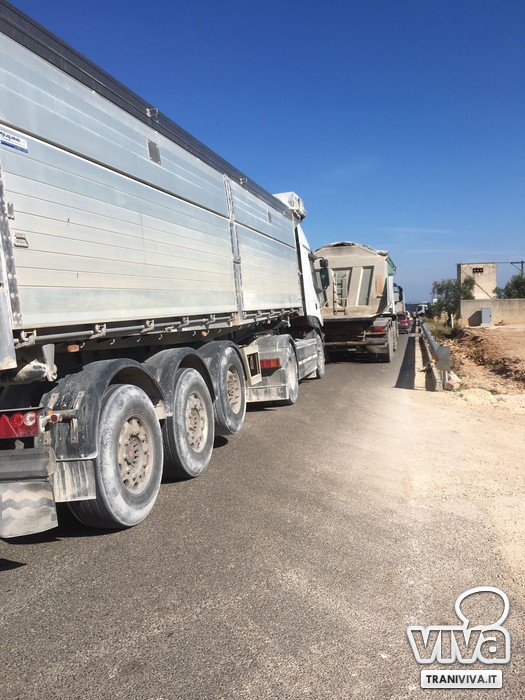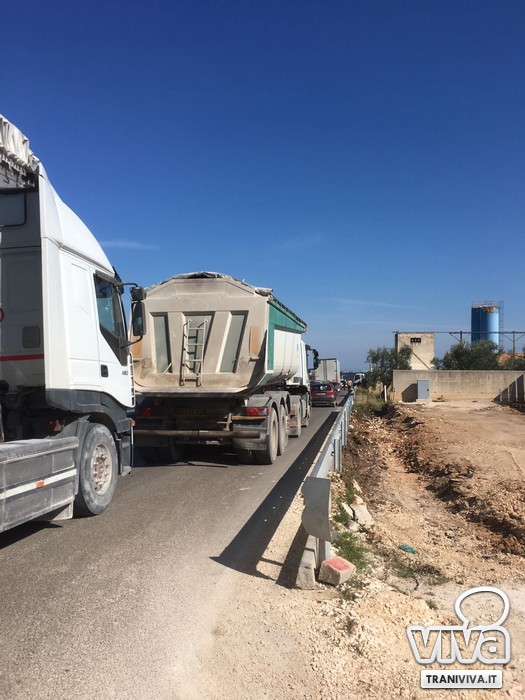 Troppi mezzi pesanti, traffico bloccato sulla complanare Trani-Andria