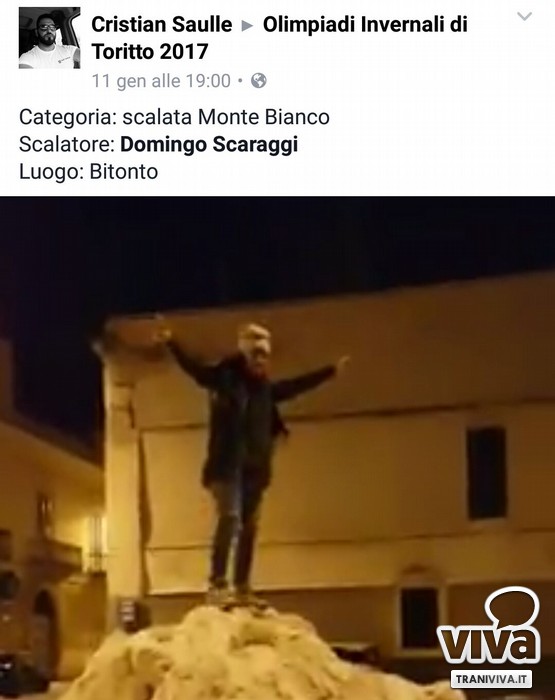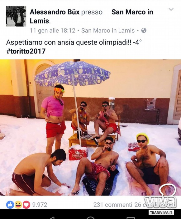 Nati e cresciuti su Facebook, spopolano da diversi giorni sui social network con una pagina a loro dedicata, hanno un proprio spot e sono stati persino menzionati sulle reti nazionali in TV. Annoverano le più disparate discipline olimpiche, tutte rigorosamente su neve o ghiaccio. Se non avete ancora capito di cosa stiamo parlando, non siete stati al villaggio Olimpico di Toritto per le Olimpiadi 2017. Nate da un'idea geniale per far fronte con il sorriso alla neve discesa copiosamente e alle rigide temperature - che da diversi giorni hanno comportato molteplici disagi (va ammesso) - le olimpiadi hanno contagiato giovani e meno giovani con divertimento assicurato.