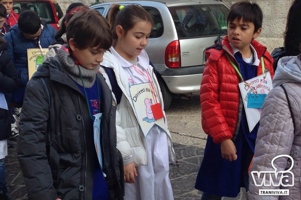 Una promessa che questa mattina a Trani è stata rinnovata. Sono circa 1500 i bambini e gli adulti, tra insegnanti e genitori, che in questo momento stanno sfilando in un corteo lungo le vie della città. Le scuole primarie e secondarie di primo grado di Trani si sono unite per ricordare l'importanza dei diritti dei più piccoli che devono essere riconosciuti e garantiti in qualsiasi parte del mondo. Alla manifestazione ha preso parte anche Paola Mauro, nel ruolo di insegnante e assessore alla pubblica istruzione del Comune di Trani.