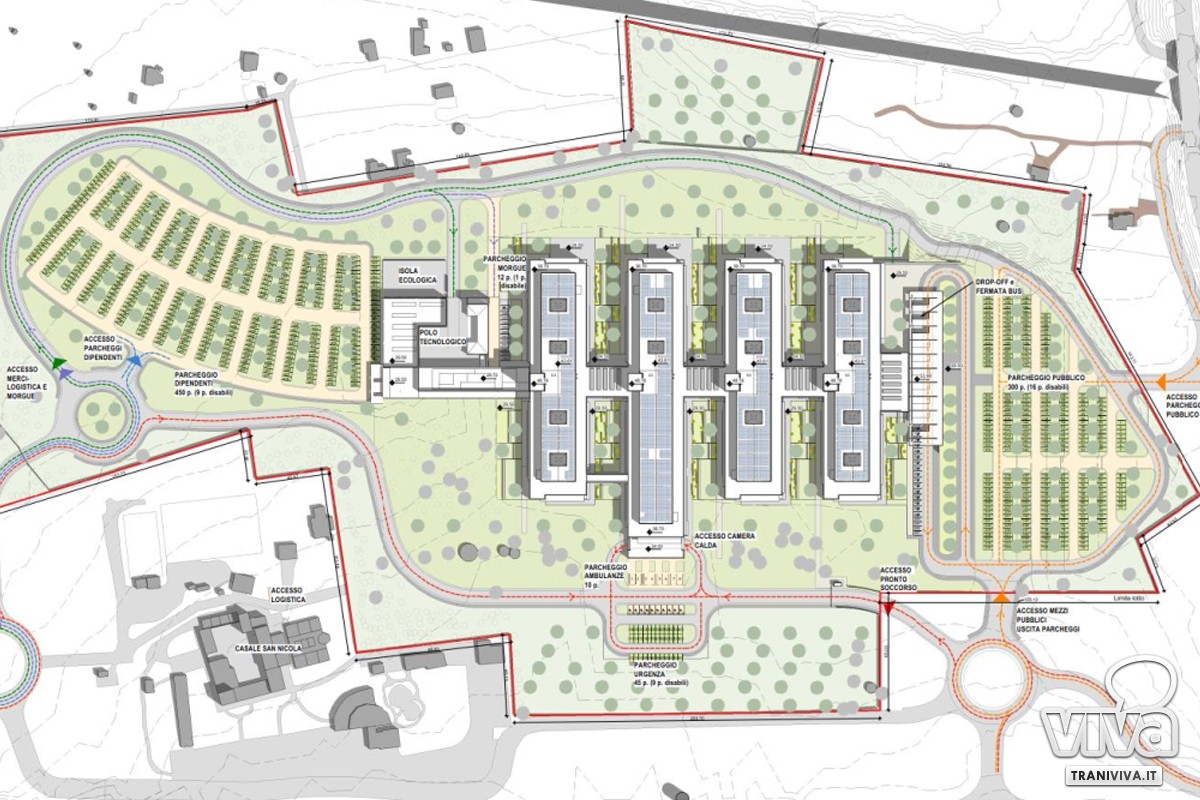 Il nuovo ospedale ospiterà 268 posti letto, di cui 25 tecnici, e beneficerà di un finanziamento totale di euro 192.500.000: sarà dotato di area medica, area chirurgica, area materno-infantile, area intensiva, area malattie infettive, pronto-soccorso, posti letto tecnici, lungodegenza e psichiatria. Ci saranno naturalmente il blocco diagnostico, il blocco operatorio, il blocco parto, blocco ambulatoriale, blocco servizi, area per il personale e area accoglienza. Il progetto, realizzato nel pieno rispetto dell'ambiente circostante è composto da un corridoio centrale e da 4 blocchi rettangolari: sono previsti 3 ingressi e percorsi di accesso organizzati per i visitatori, per i sanitari e per l'area di emergenza-urgenza. Le stanze di degenza saranno realizzate con ampie vetrate per recuperare la luce naturale, ampiamente garantita anche nell'ampia zona di ingresso."Siamo orgogliosi e soddisfatti – ha detto Tiziana Dimatteo, commissario straordinario Asl Bt – il progetto del nuovo ospedale del Nord barese è ambizioso, moderno, rispettoso delle esigenze di organizzare l'assistenza per intensità di cura. In questo momento siamo in fase di completamento delle verifiche da parte del CAB Asset sui rilievi effettuati. Entro novembre sarà consegnato il progetto definitivo per l'ammissione al finanziamento e l'avvio della gara integrata per la realizzazione del progetto definitivo e dei lavori".In base agli indirizzi programmatori il dimensionamento della struttura non è stato determinato come una semplice somma delle capacità dei reparti in chiusura o alla riproduzione dell'attuale configurazione accreditata, ma è stato basato su un'attenta analisi della popolazione target, dei suoi bisogni sanitari presenti e futuri e del contributo che il Nuovo Ospedale apporterà al rafforzamento della rete assistenziale ed al recupero di mobilità passiva. Il dimensionamento previsto per il Nuovo Ospedale, dotazioni e spazi necessari, permetterà dunque non solo di erogare l'attività presente ma di potenziarne i volumi.