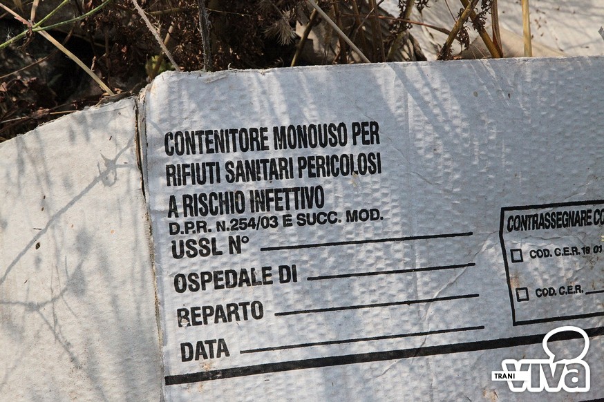 Non solo buste dell'immondizia, i classici materassi o gli scheletri di vecchie televisioni. In contrada Carrara delle monache, sulla vecchia via che collega Trani a Bisceglie, c'è il serio rischio che possa esplodere da un momento all'altro una vera e propria bomba ecologica. Eternit buttato in ordine sparso nei campi, medicinali, ma soprattutto bidoncini, presumibilmente contenenti cloruro di polivinile (pvc).