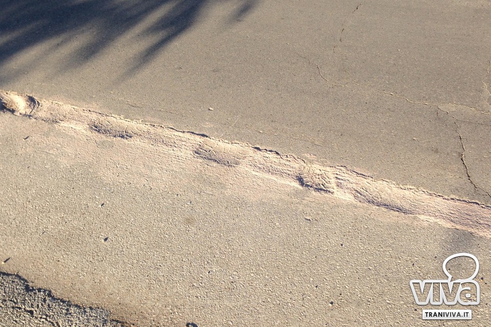 Sono partiti lunedì 22 ottobre i lavori per l'installazione della fibra ottica in tutta Trani. Due squadre, da Nord a Sud della città, dopo aver tracciato una trincea di pochi centimetri di larghezza, hanno installato migliaia di metri di fibra, provvedendo infine alla chiusura con il cemento. A distanza di poco più di un mese, i lavori hanno lasciato un evidente segno sul manto stradale. Passeggiando per via Bisceglie e corso Imbriani sembrerebbe, infatti, che non sia stato adeguatamente coperto lo scavo effettuato, tanto da lasciare un lungo solco rattoppato nell'asfalto.