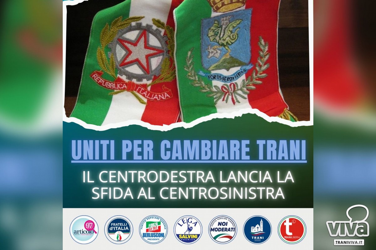 Riceviamo e pubblichiamo il comunicato congiunto del centrodestra di Trani che unisce le forze e apre la sfida per le amministrative del 2026. Dopo un percorso serio di confronto politico e programmatico, viene ufficialmente costituita la coalizione di centrodestra che si presenterà alle elezioni amministrative del 2026. Ne fanno parte Fratelli d'Italia, Forza Italia, Lega, Trani Libera, Noi Moderati, Trani 2026 e Articolo 97. Una coalizione ampia, coesa e determinata a costruire un'alternativa credibile all'attuale amministrazione di centrosinistra, che ha dimostrato tutti i suoi limiti in termini di visione, capacità di governo e prospettiva per la città.