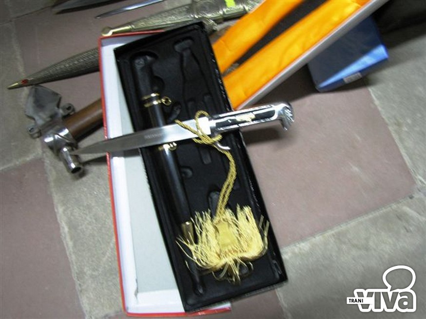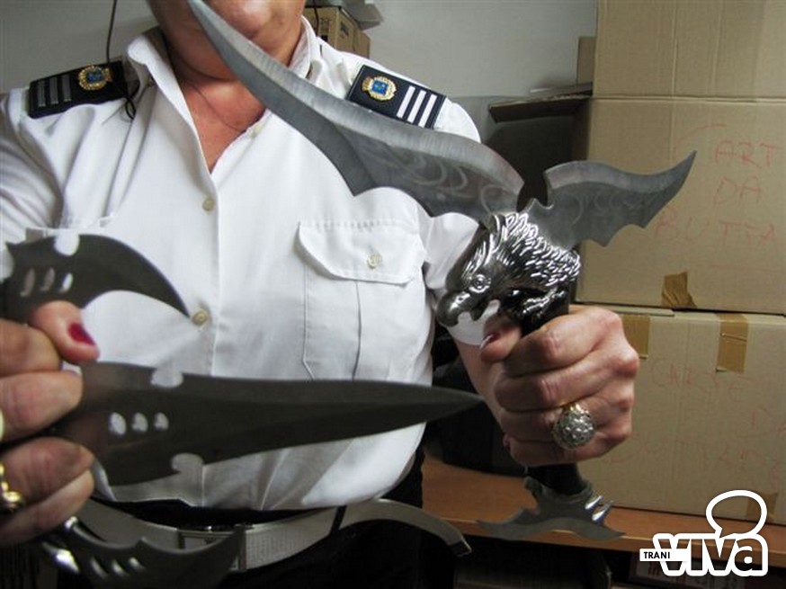 Aveva allestito, durante le manifestazioni della settimana medievale, sulla banchina del porto, vicino la chiesa di santa Teresa, uno stand con ogni tipo di arma da collezione, strumenti da punta e da taglio e riproduzioni di armi storiche. Una bancarella da paura, che non è sfuggita agli agenti di polizia amministrativa della polizia locale che hanno chiesto spiegazioni al sedicente venditore, un signore di Bari di 53 anni, B. M.