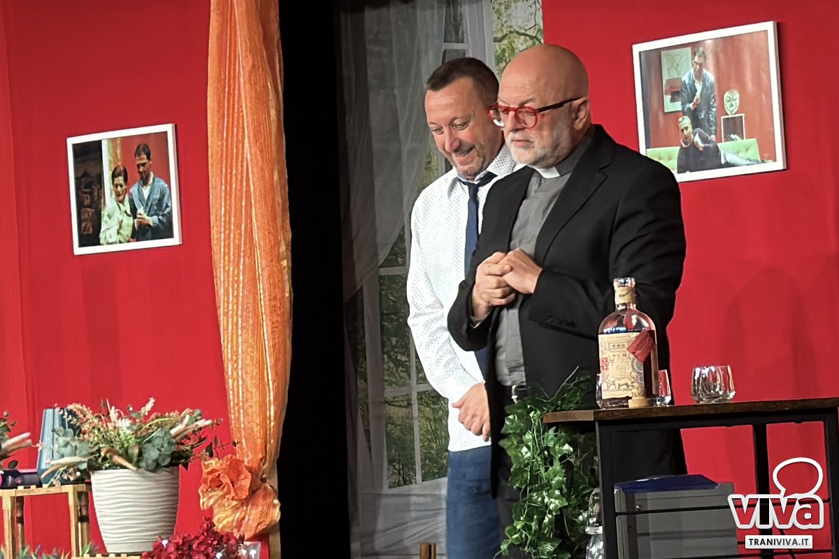 Come ha sottolineato Vincenzo Accomando, Presidente della Compagnia Artemanus, (nella commedia ha interpretato il ruolo di Don Giusto) l'obiettivo primario di "sorridere e far sorridere", un obiettivo che è stato pienamente centrato dal cast composto da Gianni Pagliuca, briosa la sua recitazione, in scena ha interpretato Guglielmo - medico, eterno Peter Pan ed impenitente don Giovanni, da Anna Raimondi, ma che brava e che grinta la sua interpretazione di Raffaella - affascinante ex modella ed anch'essa con qualcosa da nascondere, da Gaetano Nittolo che, a suo agio nei panni dell'ingenuo Vincenzo, un ruolo che davvero gli si addice, ha fatto divertire con le sue battute surreali il pubblico tranese. A completare il cast in scena Antonio Dell'Aquila, (Federico), Alessandra Sarno (Ketty) e Mara Salvatore (Germana). ). La regia di Valentina Ripa ha valorizzato lo spazio scenico in modo funzionale e i dialoghi serrati hanno reso credibili i personaggi.