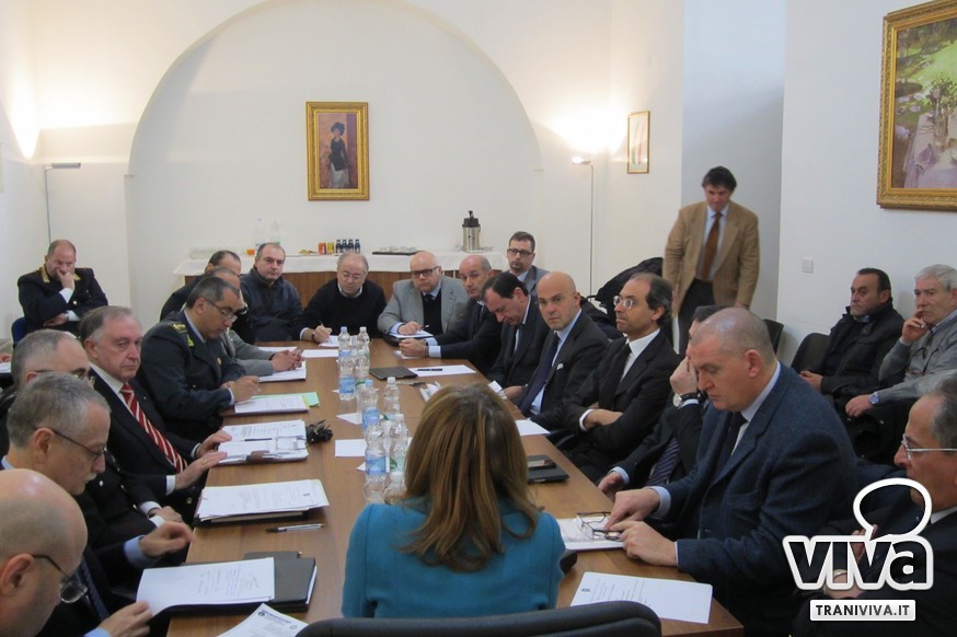 Questa mattina il sindaco di Trani, Luigi Riserbato, ha partecipato in prefettura a Barletta alla riunione del comitato provinciale per l'Ordine e la sicurezza pubblica, presieduto dal prefetto della Bat, Clara Minerva. All'incontro hanno partecipato anche il procuratore capo presso il tribunale di Trani, Carlo Maria Capristo, ed i rappresentanti delle associazioni di categoria dei commercianti e della Confindustria di Barletta Andria Trani.