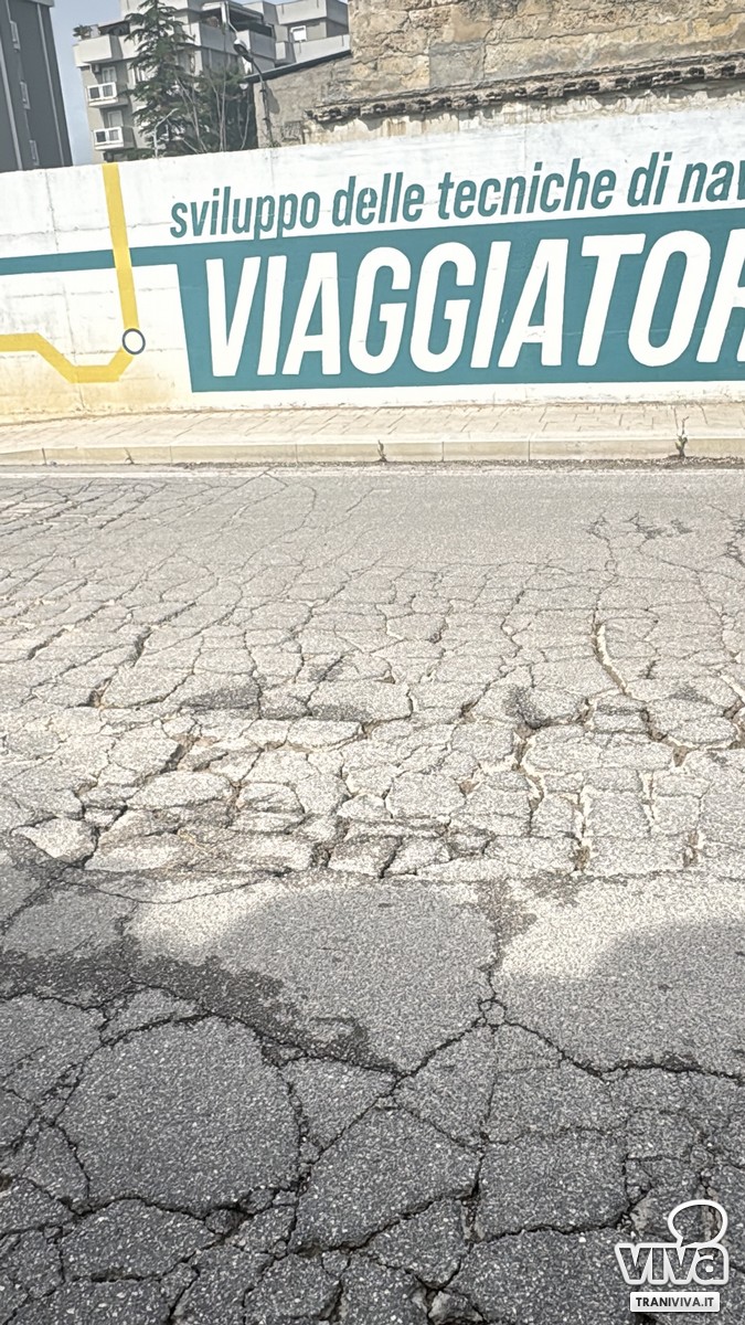 Stamattina, giovedì 16 aprile 2026, la situazione della viabilità è alquanto precaria: persiste un'ampia buca che se pur segnalata, limita, in uno alla situazione dell'asfalto ammalorato, fortemente il traffico veicolare.