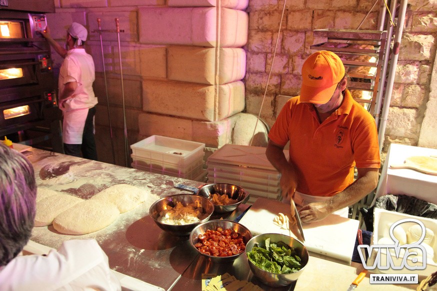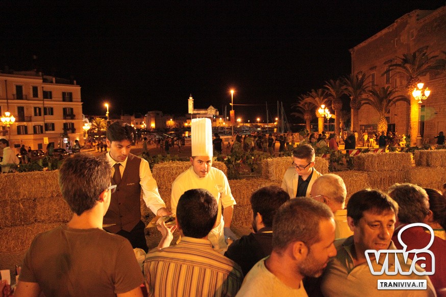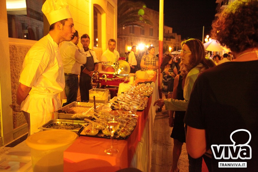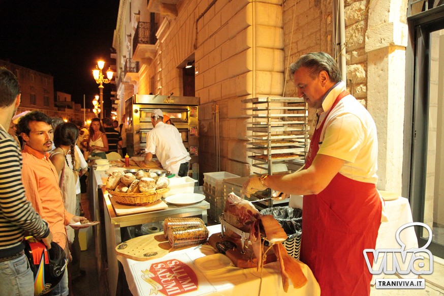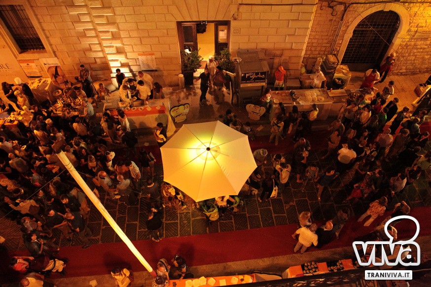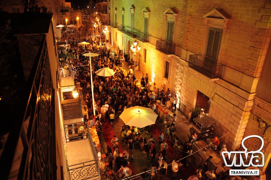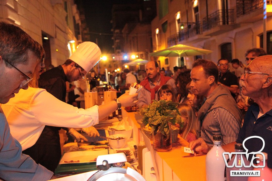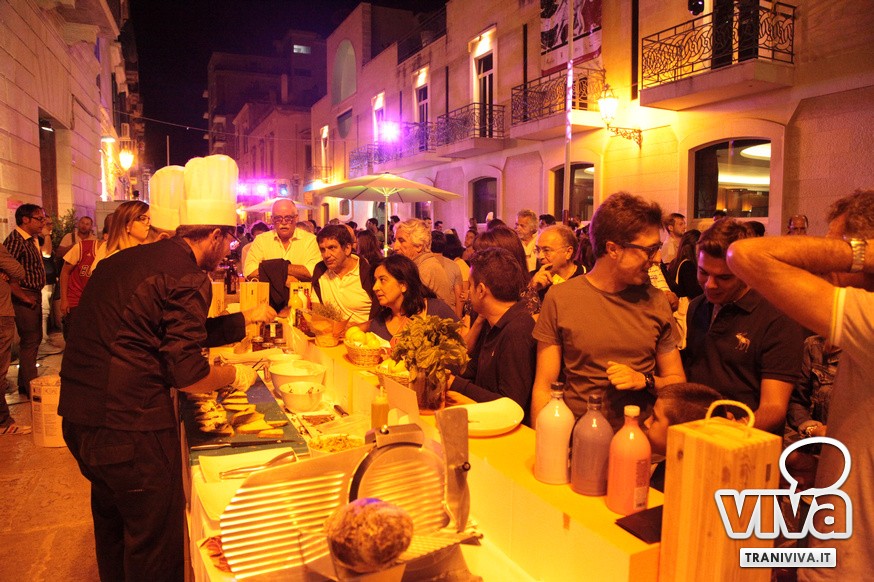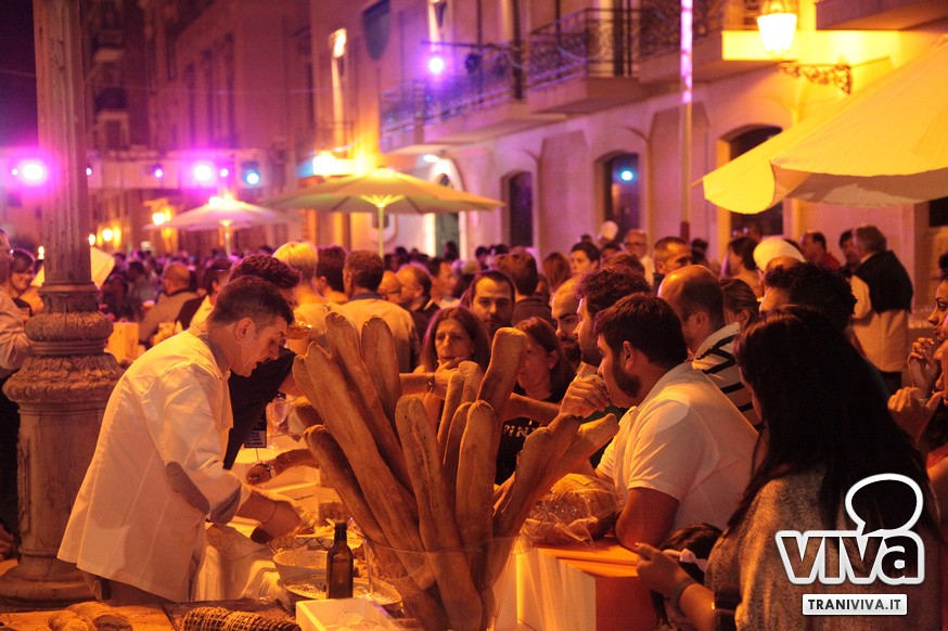 Via San Giorgio si trasforma in strada del gusto e ritorna ad essere bella e gremita. Potere del Trani International Festival e merito di Anna Roberto, curatrice del segmento fooding del Tif. A lei si deve l'intuizione di aver puntato diritto al piacere del cibo ed alla sua qualità, richiamando a Trani l'elite della gastronomia pugliese e nazionale e sottolineando l'autenticità e l'eccellenza dei nostri prodotti con un percorso di assaggi dal salato al dolce in cui nulla è lasciato al caso. Protagonista in via San Giorgio è stato il pane, interpretato in vari modi, abbinato con spezie e sapori particolari. La gente si accalca, osserva, degusta, sorseggia buon vino. Odori e sapori conosciuti a molti perché figli delle nostre tradizioni ma impiattati e presentati in maniera originale e con soluzioni anche coraggiose. E in via San Giorgio tutti gradiscono, tutti si sentono un po' come a casa, o come ospiti in un salotto accogliente e familiare. Due ore e più di gustose scoperte, in un'atmosfera genuina e conviviale.