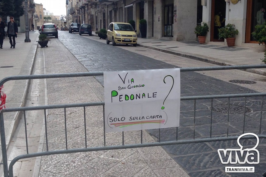 Il problema è passato probabilmente un po' in secondo piano perché è stato segnalato veramente tante volte, senza mai però essere stato risolto. E così ci ha pensato un cittadino di buon senso a ricordare a tutti che è necessario continuare a parlare di via San Giorgio, quella strada che nonostante sia ormai da diversi anni "area pedonale" continua ad essere tranquillamente di transito per le autovetture. Ecco che oggi è apparso un cartello, attaccato alla transenna che dovrebbe impedire l'accesso alle auto in via San Giorgio che recita cosi: "Via San Giorgio pedonale? Solo sulla carta".