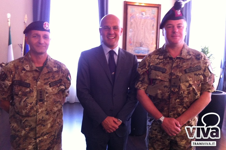 Durante l'incontro, assolutamente cordiale, il sindaco ha sottolineato il forte legame che lega la comunità tranese all'Esercito. Come si ricorderà, ad aprile del 2012 il nono reggimento Fanteria Bari è stato insignito della cittadinanza onoraria di Trani, così come sancito da una delibera di Consiglio comunale del luglio del 2011.