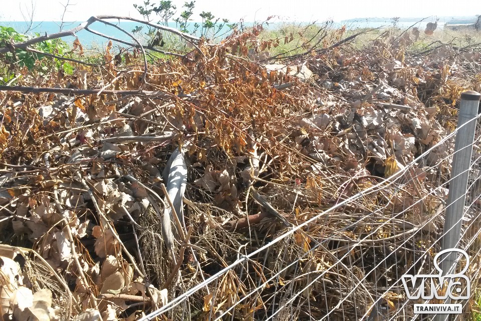 «Nonostante gli enormi sforzi che l'amministrazione comunale sta compiendo per prevenire, contrastare e debellare fenomeni di dilagante malcostume legati al conferimento di rifiuti di qualsiasi natura sul territorio comunale, continuiamo ad assistere a scene di ordinaria inciviltà». L'assessore all'ambiente del Comune di Trani, Michele Di Gregorio, punta l'indice contro i responsabili di uno scempio in riva la mare scoperto in mattinata, durante i quotidiani sopralluoghi che si stanno compiendo in tutta la città. Lungo il sentiero che conduce da lungomare Mongelli verso le Matinelle è stata scoperta una discarica di residui di potatura.