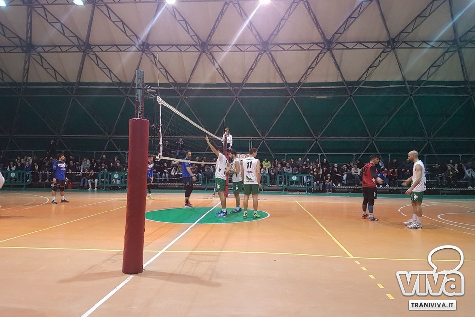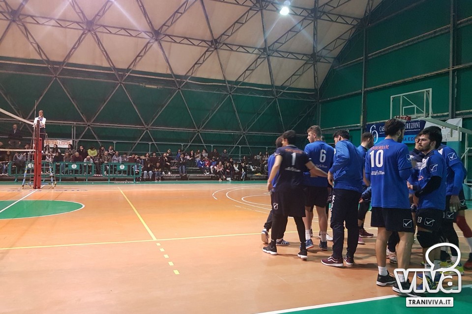 Partita molto equilibrata con Specchia che non lascia nulla al caso, ma fa i conti con un gruppo determinato e che con grinta e cuore in mano strappano i primi due set (25-20; 25-18). Nel terzo set la gara si gioca punto su punto fino al 17-20 a favore degli ospiti che prendono il largo e la compagine tranese non riesce più ad agguantarli.