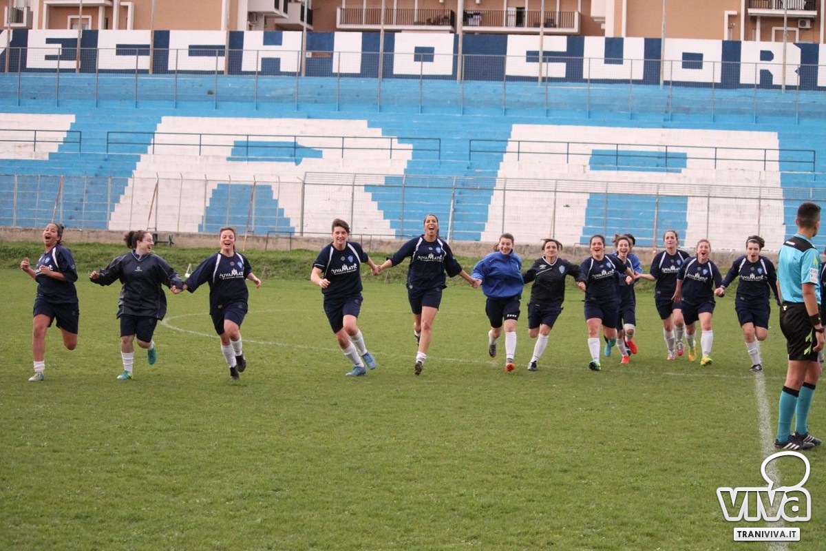 L'Apulia Trani non si ferma più: la squadra allenata da Francesco Mannatrizio centra la quinta vittoria consecutiva, in casa, contro il Grifone Gialloverde terzo in classifica grazie alla doppietta su rigore di Leila Maknoun. Dopo i successi contro Catania, Real Colombo, Napoli e Nebrodi, le pugliesi confermano l'ottimo stato di forma affondando una delle formazioni più costanti del campionato e mantenendo, per la terza gara consecutiva, la rete inviolata.