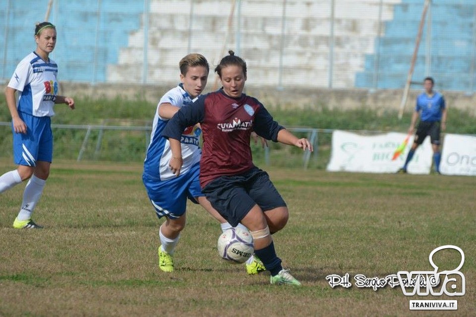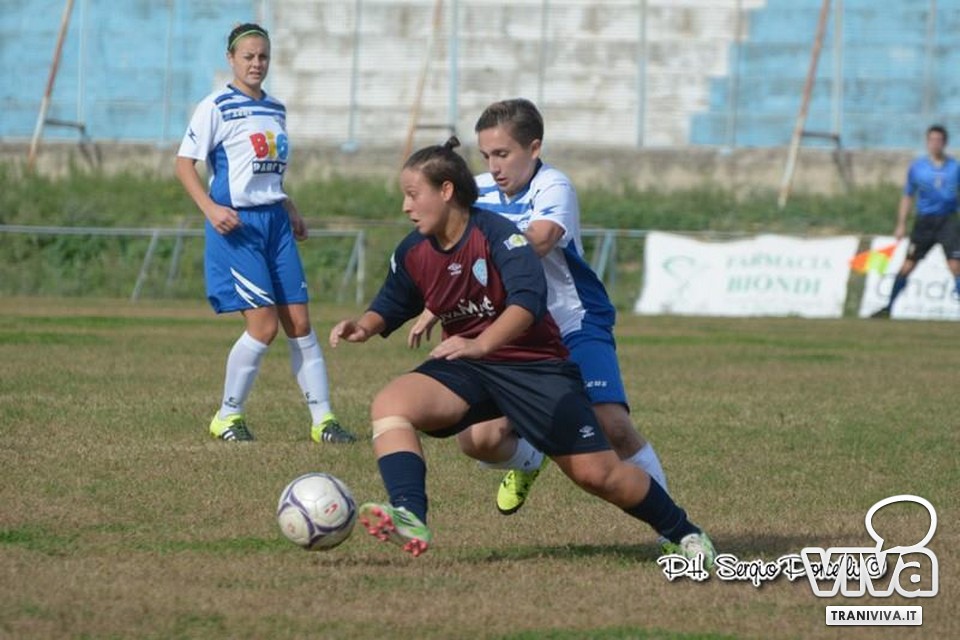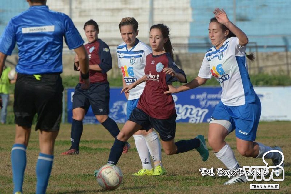 Grande esordio della Apulia Trani in serie B con un ottimo pareggio, 0-0 contro la Napoli Dream Team. La squadra di casa si è difesa perfettamente contro l'impraticabile campo da gioco, l'arbitro molto generoso nei confronti delle ospiti napoletane un po' più aggressive, che hanno collezionato infatti cartellini gialli. L'Apulia scende in campo con Mariano T., Spallucci, Chiapperini, De Marinis, Iorio, Laurora, Volpe, Labianca, Mariano P., Resta, Sgaramella. Nel secondo tempo, capitan Spallucci viene sostituita, a causa di un infortunio, da Dicillo. La fascia di capitano passa così a Mariano P.