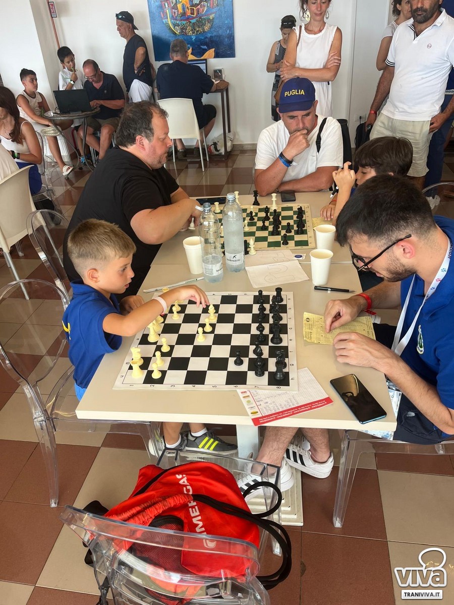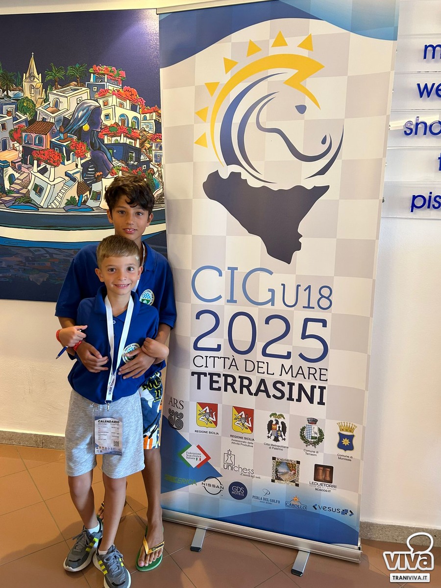Dal 28 Giugno al 5 Luglio si sono svolti a Terrasini (Sicilia) i Campionati Italiani Giovanili 2025 di scacchi, con quasi 1300 atleti in competizione. Tra i 50 rappresentanti pugliesi, ci sono anche i tranesi Alberto Faggiani (U8) e Carlo Tommaso Muciaccia (U12). Alberto ha lottato per entrare nella top 10 nazionale, mentre Carlo ha chiuso oltre metà classifica su oltre 220 partecipanti.