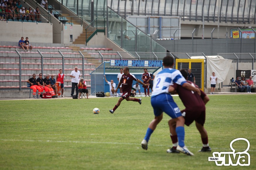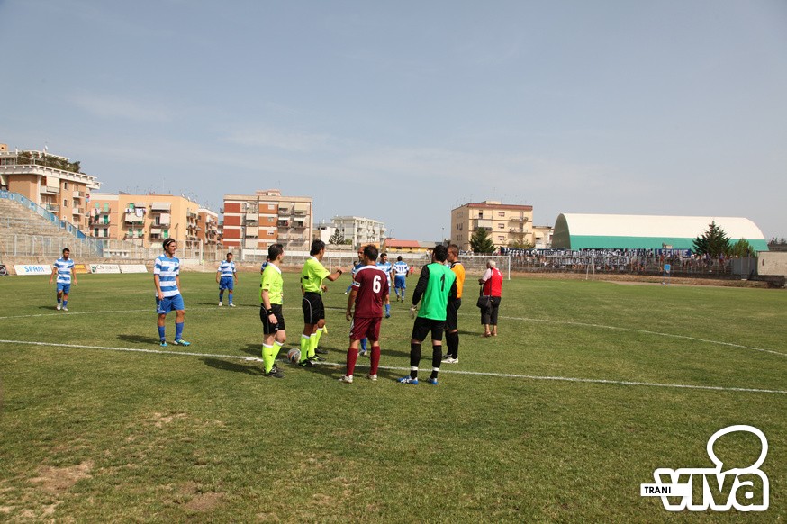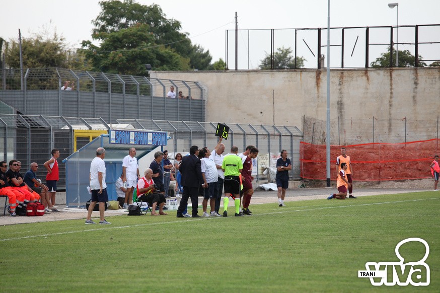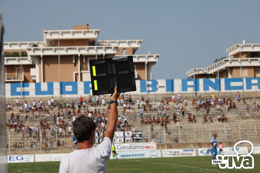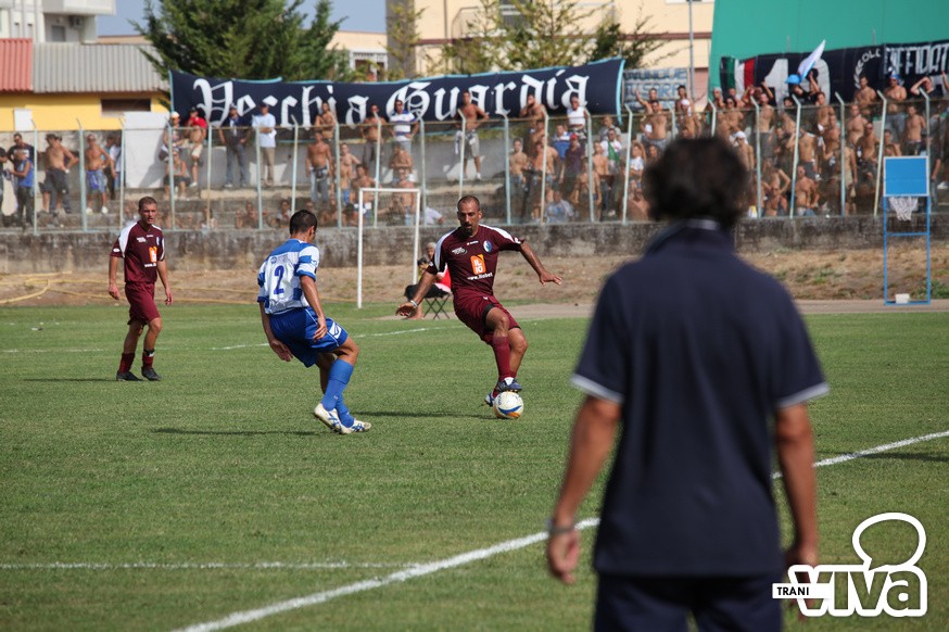 Ancora una volta diventano determinanti gli episodi. Alla mezzora Dellisanti getta nella mischia Guacci e dopo nemmeno un minuto l'esterno sinistro si ritrova solo davanti a Rasti ma non riesce a superarlo. Sul capovolgimento di fronte, Mignogna si porta a spasso Giardino che è costretto a fermarlo fallosamente: secondo giallo e Trani in dieci. Siccome le disgrazie non vengono mai da sole, sulla susseguente punizione di Kettlun, Rossi combina la frittata calcolando male la traiettoria del pallone che si infila in porta. La partita finisce qui. Boccolini gongola e si gode anche la terza rete di Galetti, libero di battere a rete da posizione centrale. L'attaccante, ex Monopoli, era da poco entrato sul terreno di gioco.