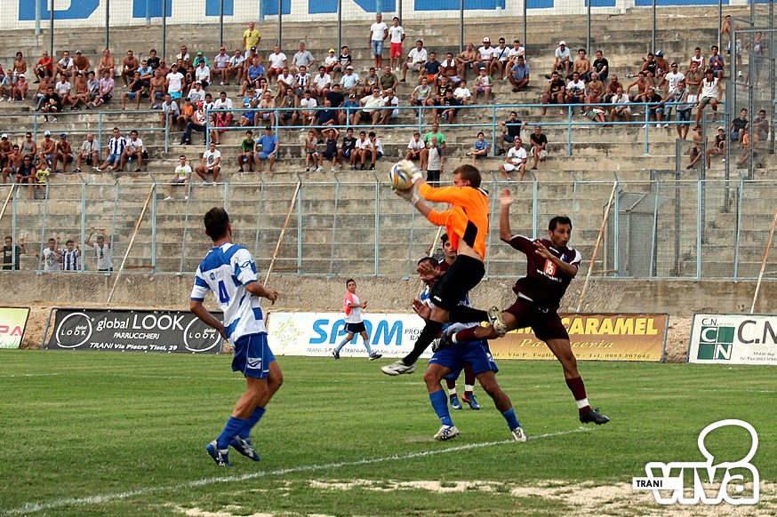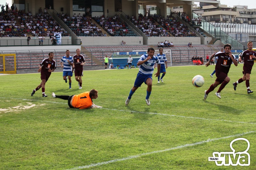 Mille spettatori assistono al debutto della Fortis Trani in campionato. Partenza peggiore non poteva esserci: al Comunale vince il Brindisi che capitalizza tutte le opportunità avute e ringrazia il Trani dei tanti errori commessi.