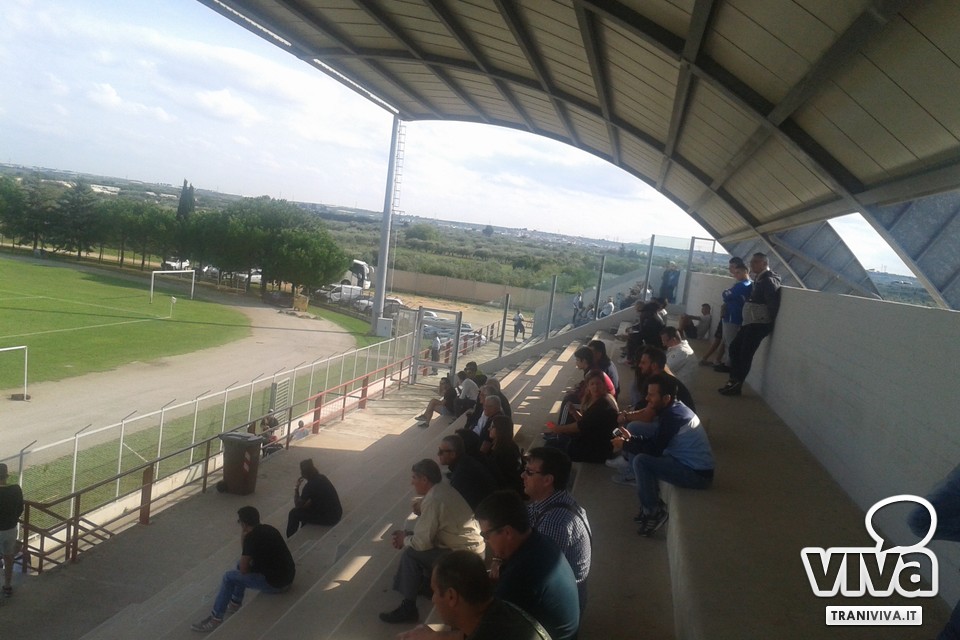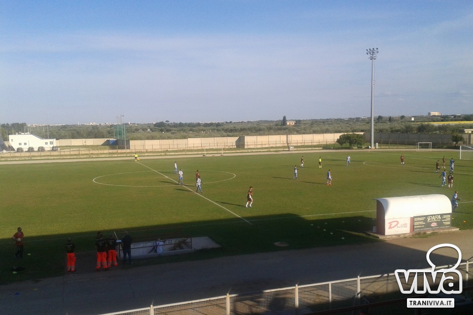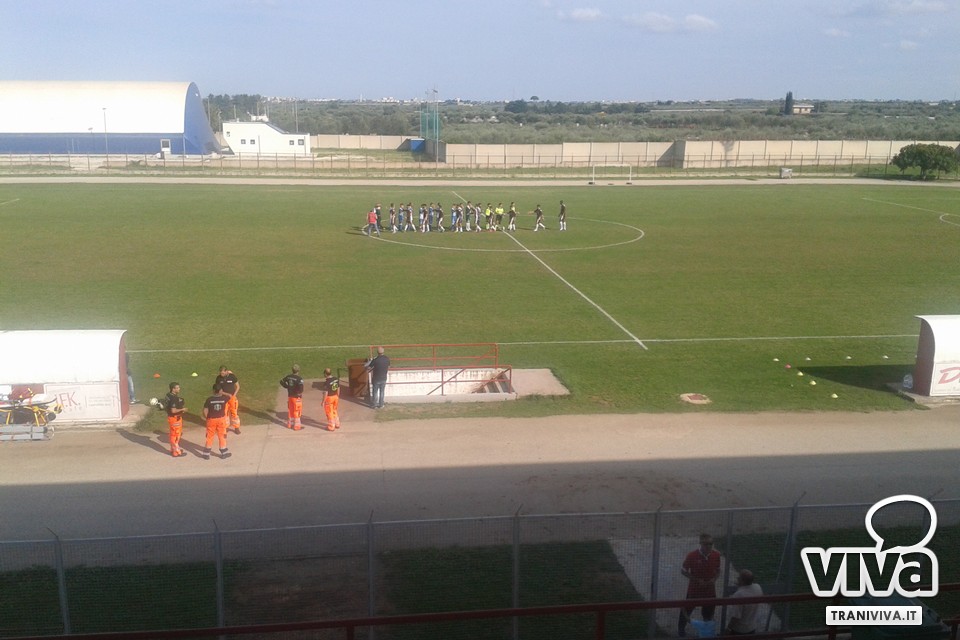 La ripresa vive momenti di estrema tranquillità (complice il prevedibile calo fisico dei biancazzurri) tanto che la prima emozione è costituita dall'ammonizione per simulazione di Villani. Lo stesso attaccante calcia a lato dall'altezza del dischetto a seguito di un contropiede originato da un'entrata scomposta ai danni di Belluoccio. Al 22' espulso Toure per proteste all'indirizzo del direttore di gara che nel corso della contesa ha manifestato un atteggiamento arrogante nei confronti dei ragazzi tranesi. Musacco è abile nel deviare in corner un fendente di Sanchez per poi sventare coi piedi un'azione da rete di Jimenez. Al 43' viene incomprensibilmente allontanato dalla panchina mister Fumai mentre Boualam spreca l'occasione del tris in pieno recupero. A fine gara non sono mancate le rimostranze dei presenti verso l'arbitraggio indecoroso del signor Mallardi della sezione di Bari.