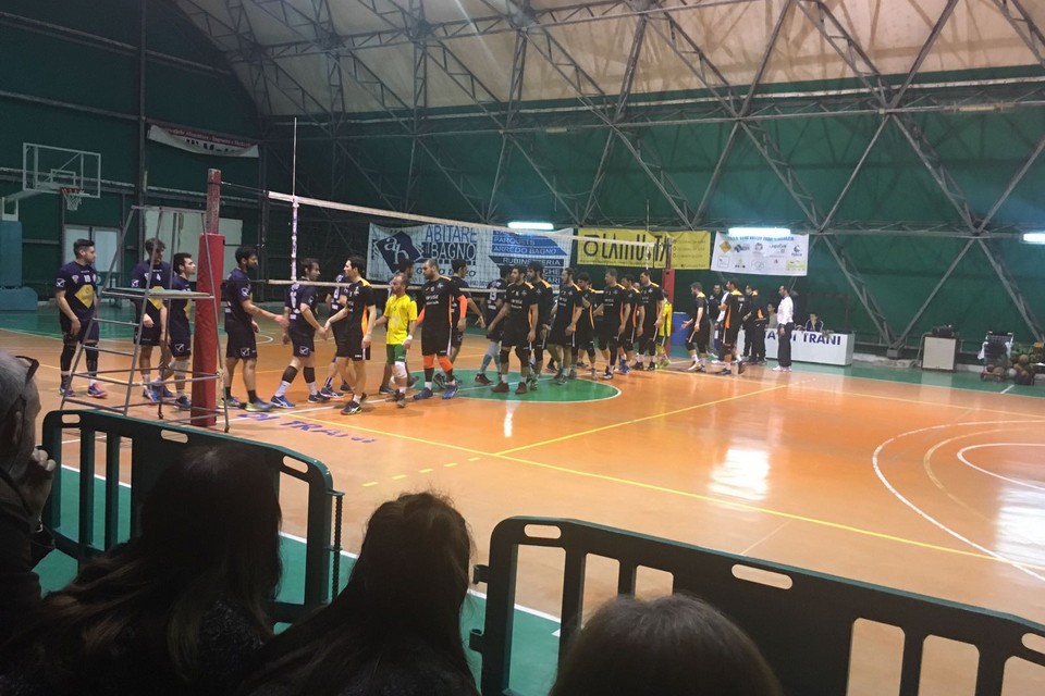 Entrambe le squadre non vogliono perdere il set che termina 26-28 a favore del Triggiano, nonostante le ottime azione e occasioni del Trani che dopo una bellissima rimonta avrebbe meritato la vittoria del set. Nel secondo set i tranesi non riescono a mettere in difficoltà il Triggiano che si porta nuovamente in netto vantaggio, nonostante i time out chiamati da mister Passaro i ragazzi tranesi non reagiscono e perdono il secondo set 18-25. Il terzo set inizia in maniera diversa, l'Ottica Lamusta si porta in vantaggio tenendo un distacco di quattro punti che mantiene fino a metà set, poi il Triggiano mette in difficoltà il Trani, soprattutto in ricezione, recuperando così lo svantaggio e aggiudicandosi anche il terzo set 18-25.