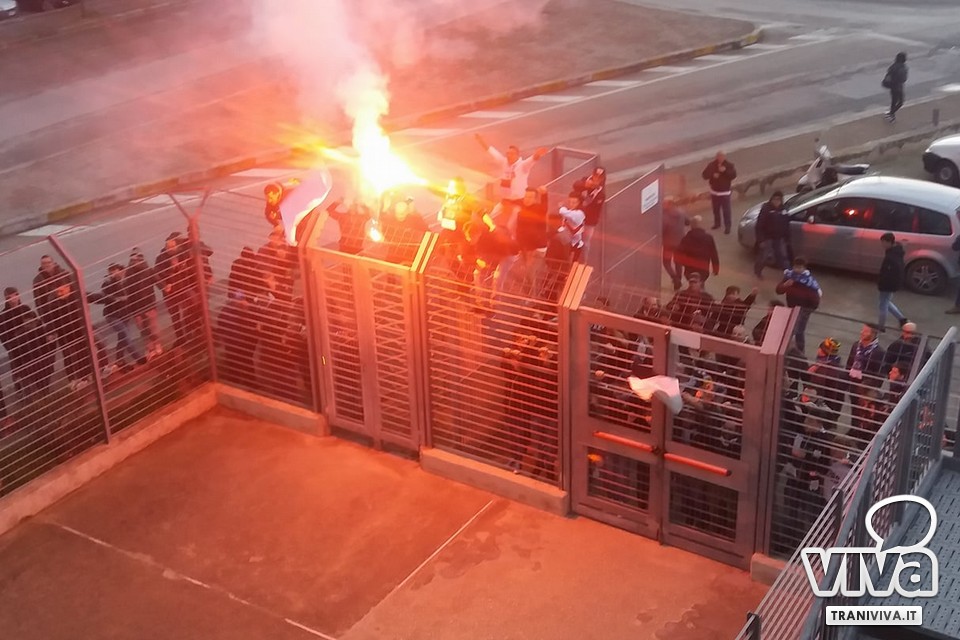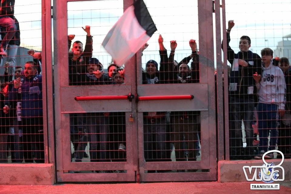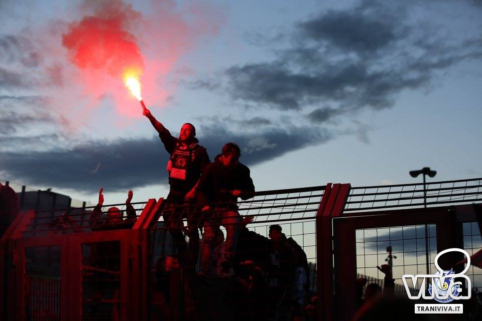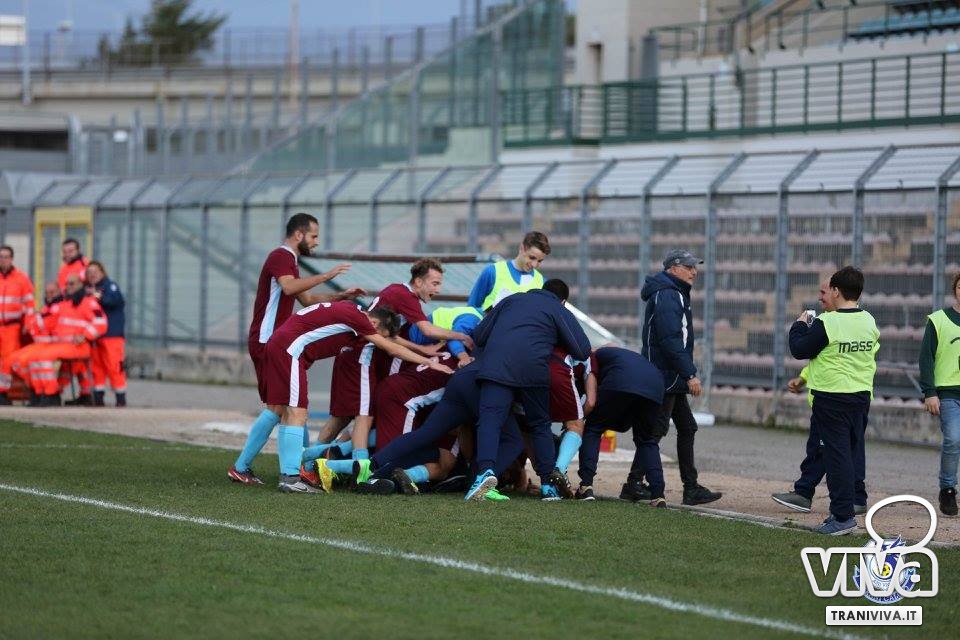 Al 32', infatti, lo scatenato Arena deposita alle spalle del giovane Turi un fendente imparabile. La qualificazione pende dalla parte dei biancazzurri che, nonostante ciò, non si accontentano sfiorando il tris in ripartenza con Nannola e Martinelli; al 43' è proprio quest'ultimo a chiudere i conti sigillando il derby adriatico con una stoccata che manda in visibilio l'ambiente calcistico tranese. A fine gara i calciatori del presidente Michele Amato si radunano all'esterno dello stadio abbracciandosi con gli impareggiabili supporters i quali, intonando cori e tributando la meritata ovazione ai beniamini, ringraziano per la conquista della finale che si disputerà giovedì 21 dicembre (in campo neutro, sede da stabilire) contro il Fasano che si impone al "Capozza" di Casarano dopo i calci di rigore.