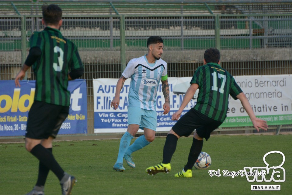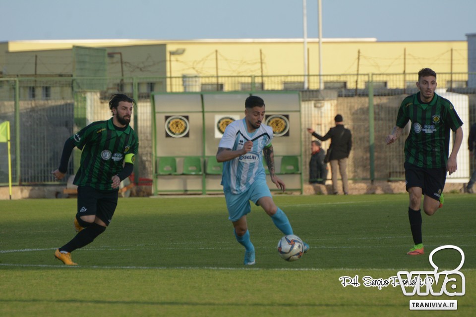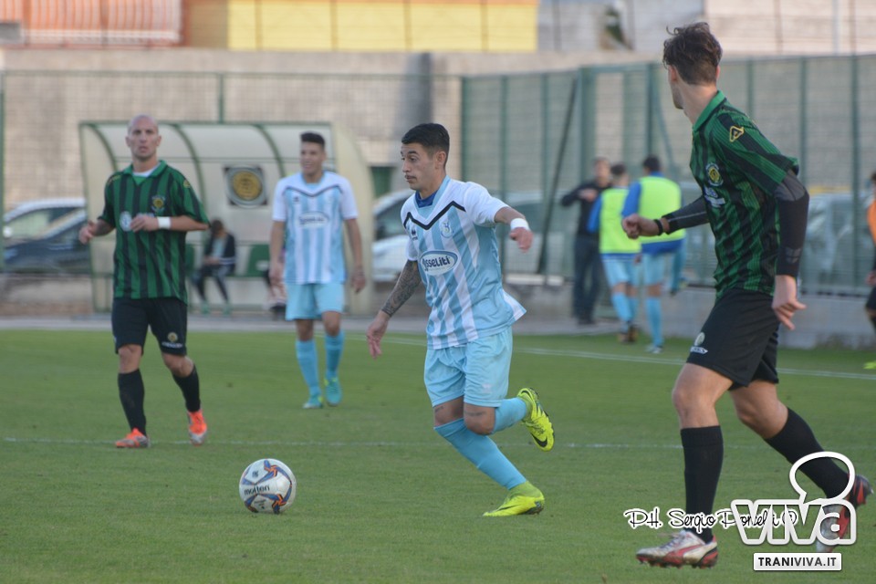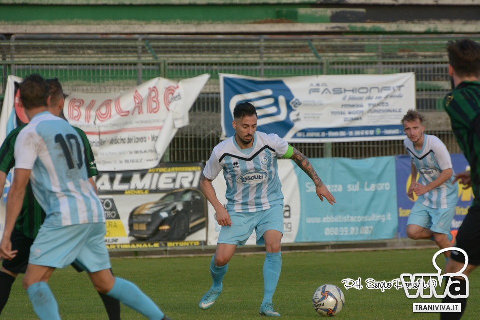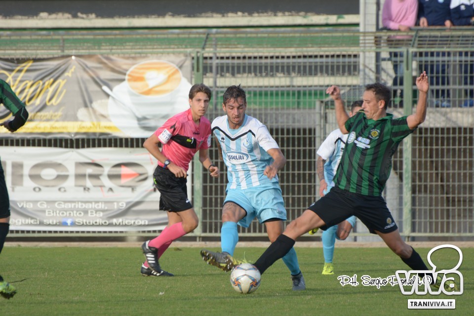 Il Trani rimedia la seconda sconfitta stagionale perdendo con un secco 3-0 a Bitonto al termine di una prestazione caratterizzata da un primo tempo in cui ha evidenziato un dominio assoluto tale da confezionare numerose opportunità per portarsi in vantaggio. Nel secondo tempo, invece, matura il crollo dei biancazzurri che non riescono a sfoderare la stessa intensità ammirata in precedenza concludendo, tra l'altro, la gara in dieci uomini.